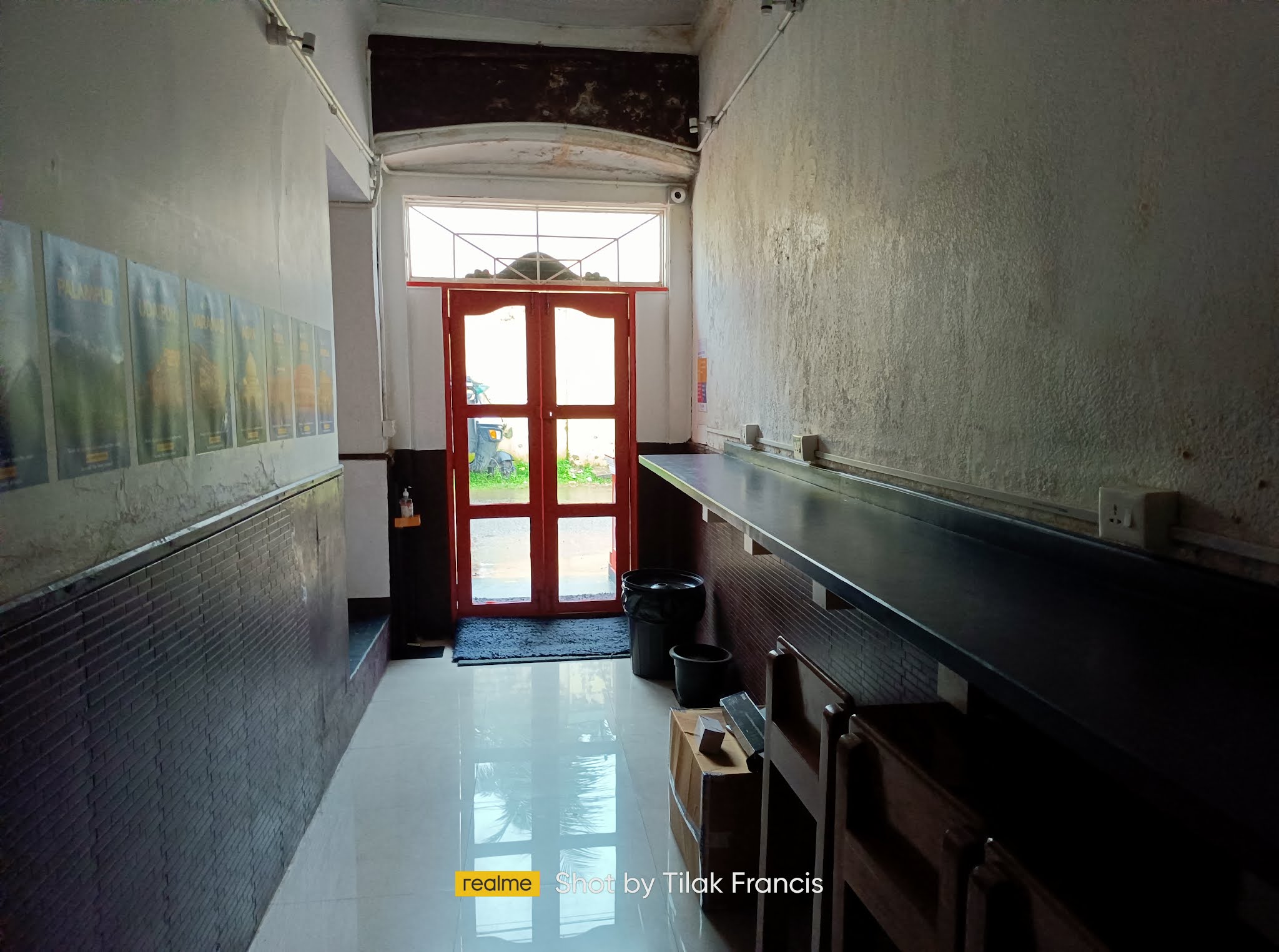 Dining area in the hostel and the passage leading to Calvathy road in front.